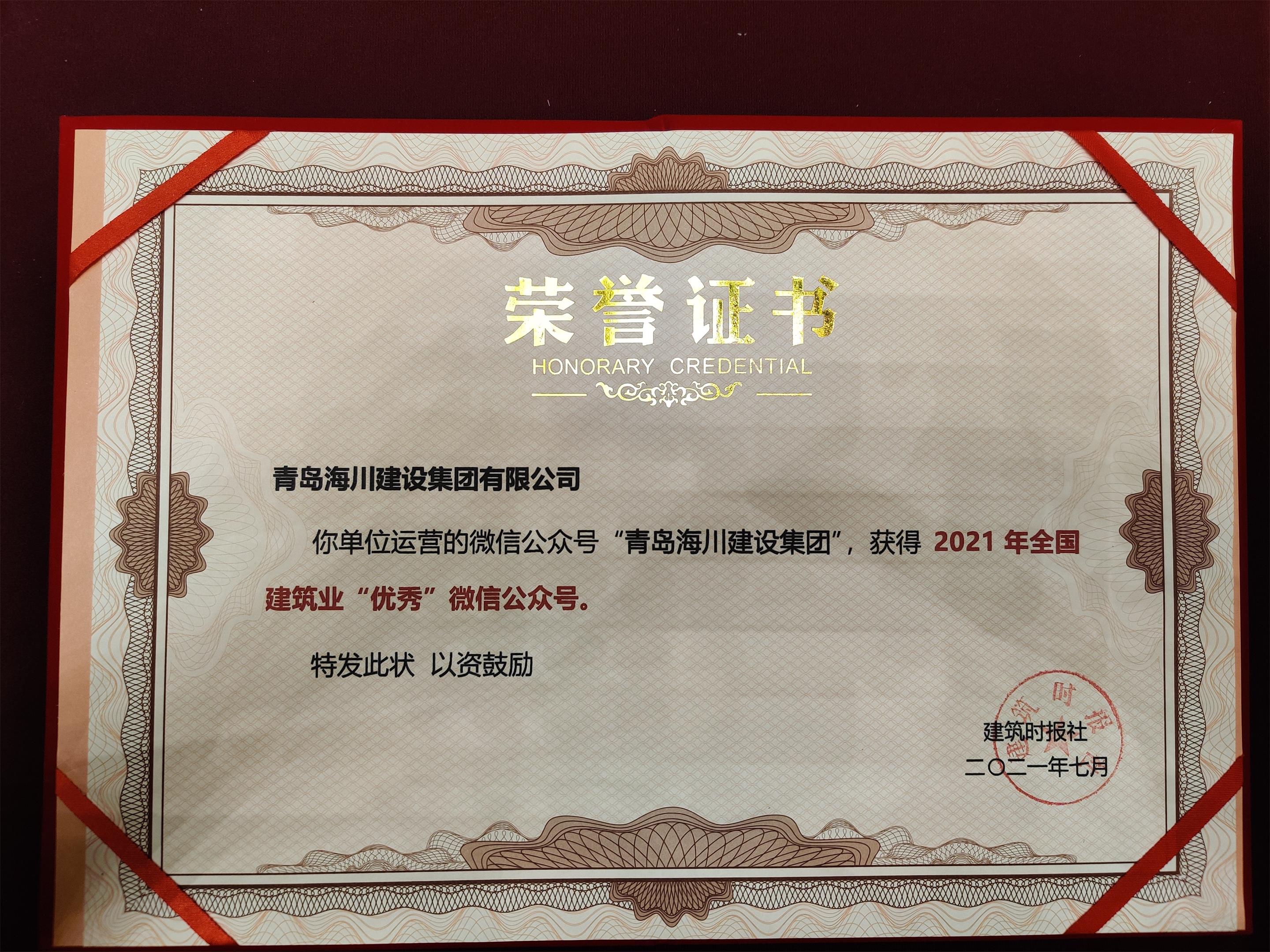 7月16日,由建筑時(shí)報(bào)社主辦的2021建筑業(yè)微信公眾號(hào)運(yùn)維經(jīng)驗(yàn)交流研討會(huì)暨全國(guó)建筑業(yè)優(yōu)秀公眾號(hào)頒獎(jiǎng)典禮在揚(yáng)州召開(kāi)。青島海川建設(shè)集團(tuán)運(yùn)營(yíng)的官方微信公眾號(hào)“青島海川建設(shè)集團(tuán)”獲得2021年全國(guó)建筑業(yè)優(yōu)秀微信公眾號(hào)。